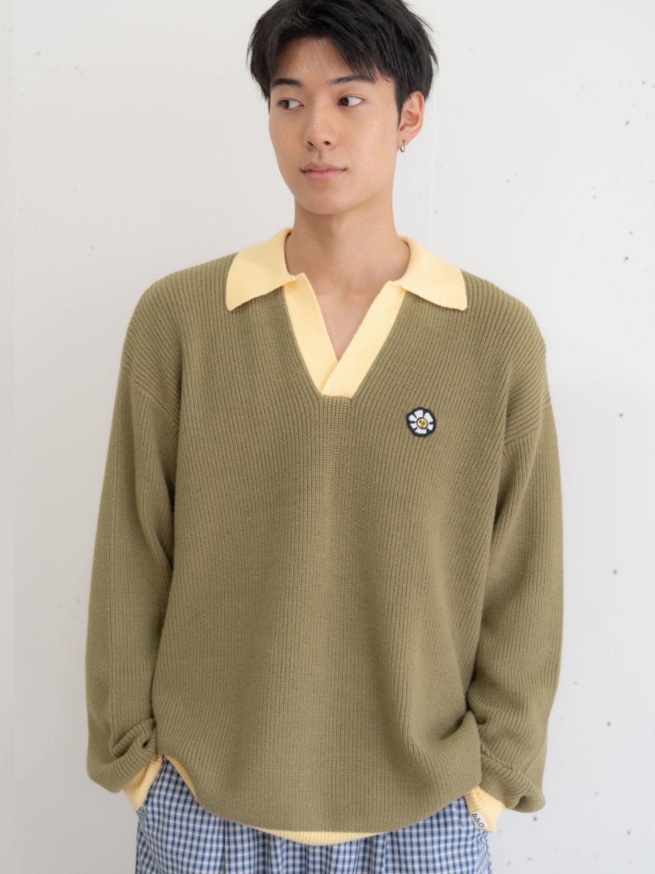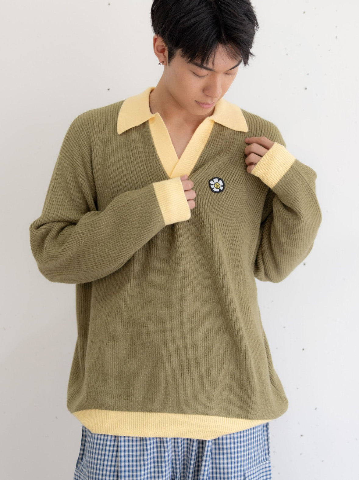 ・シャツをインナーに重ね、衿をレイヤードさせてプレッピーに