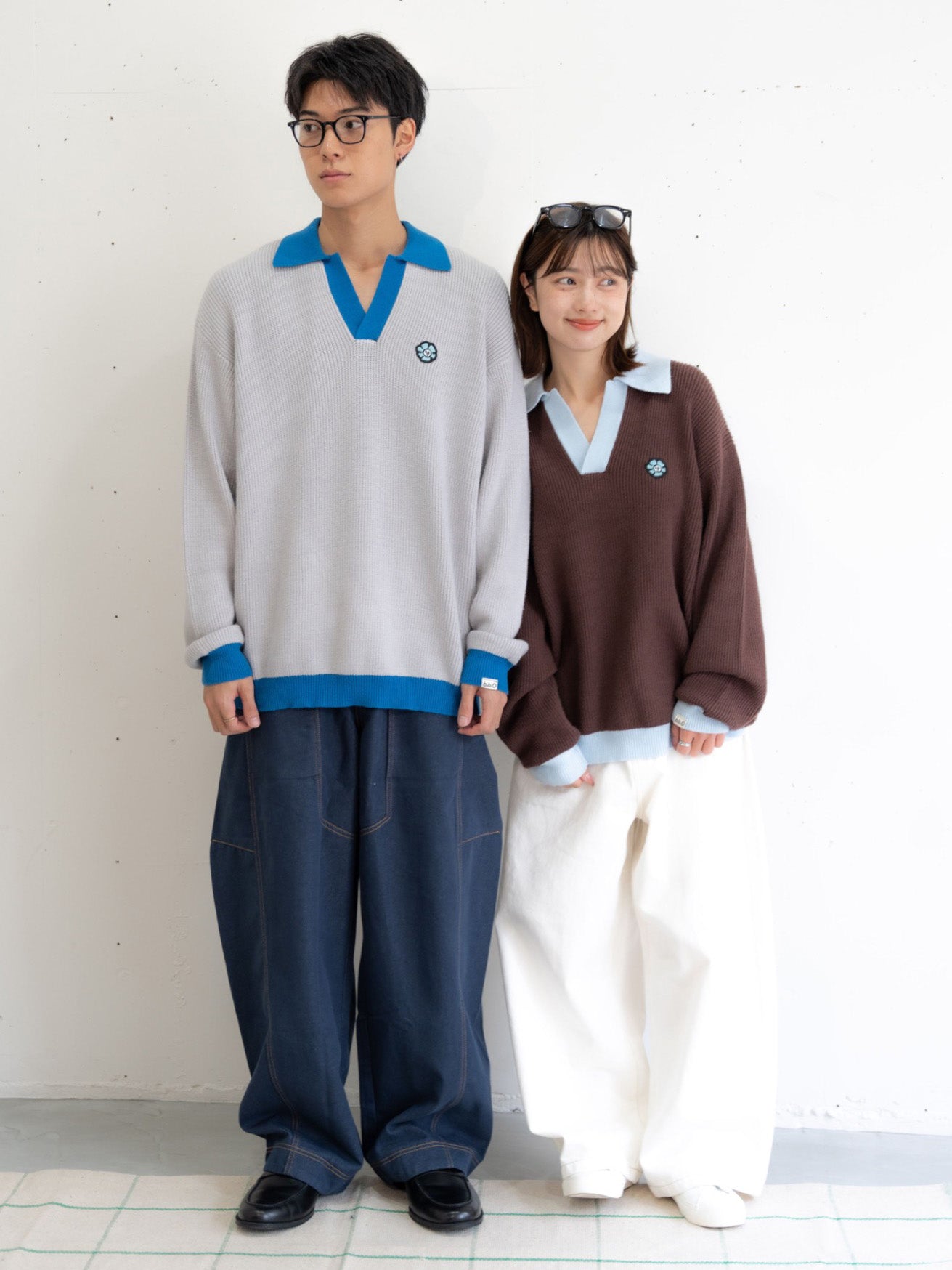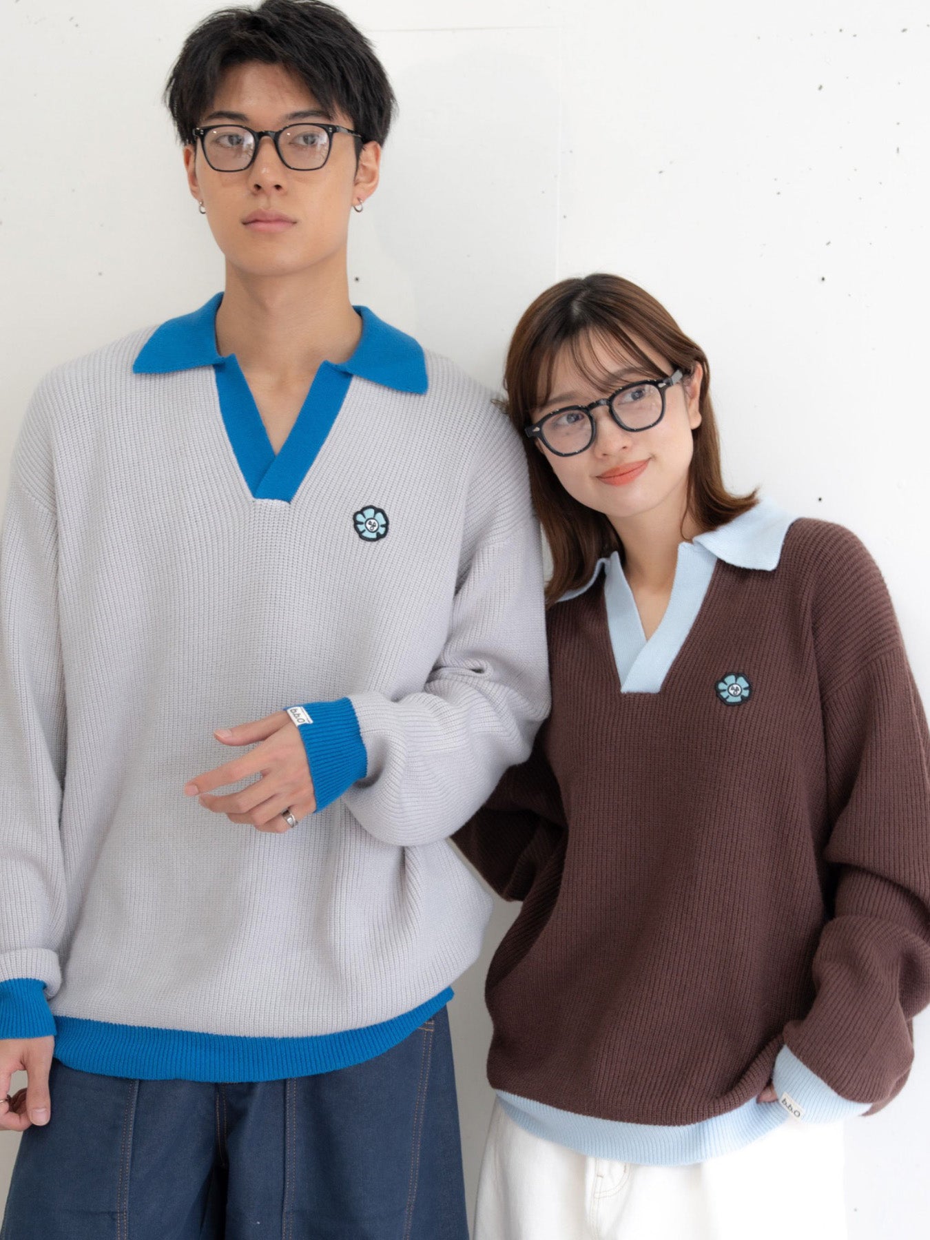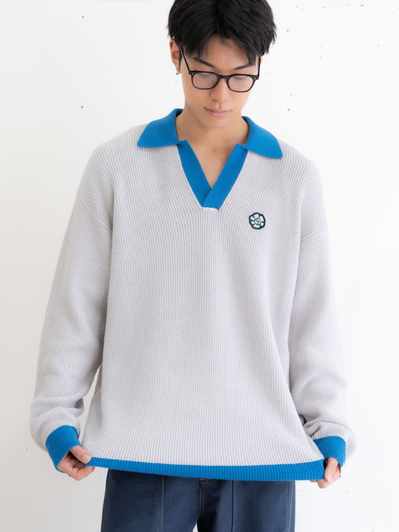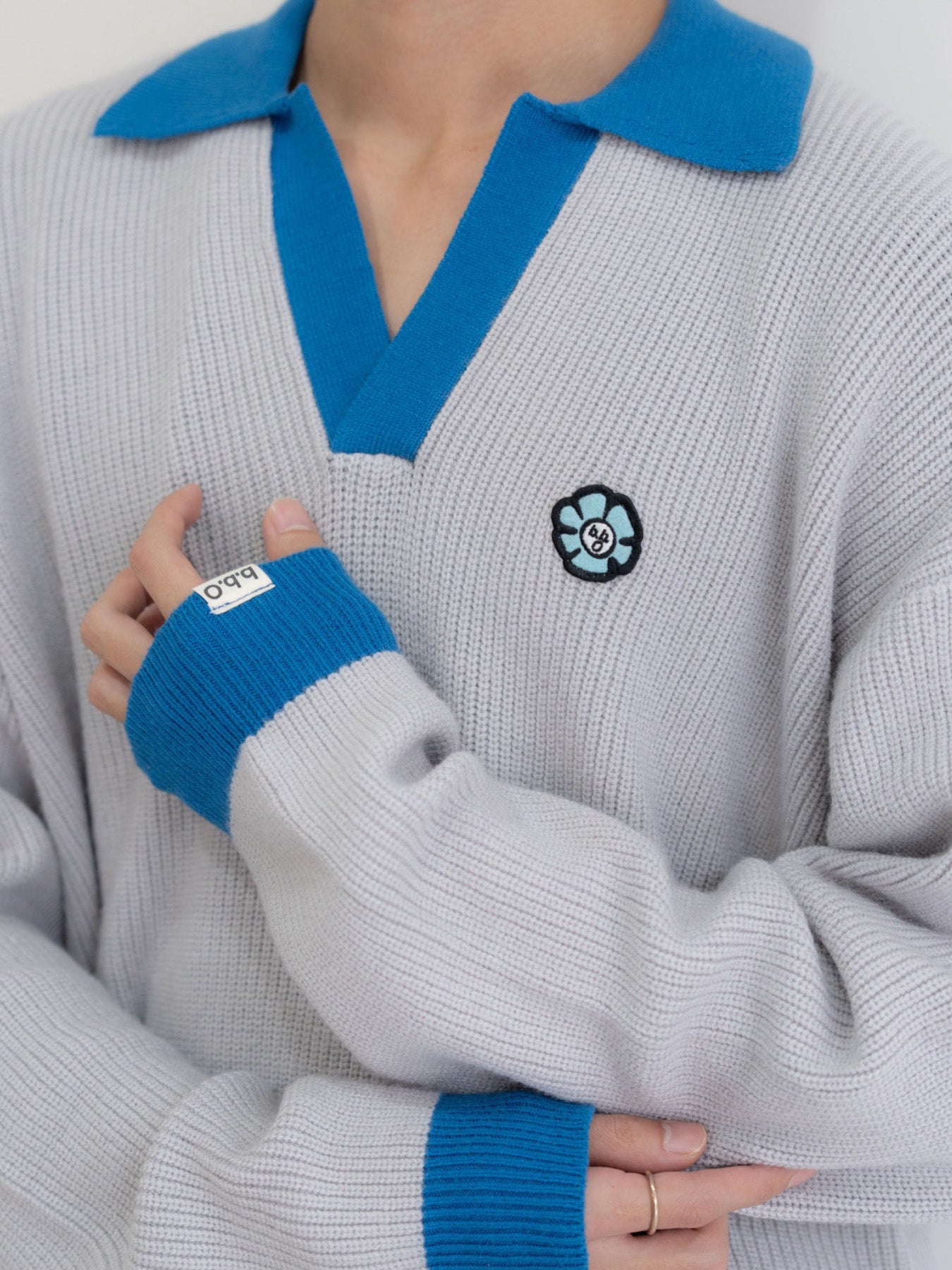 【bbO】フラワーアイコンバイカラーポロニット