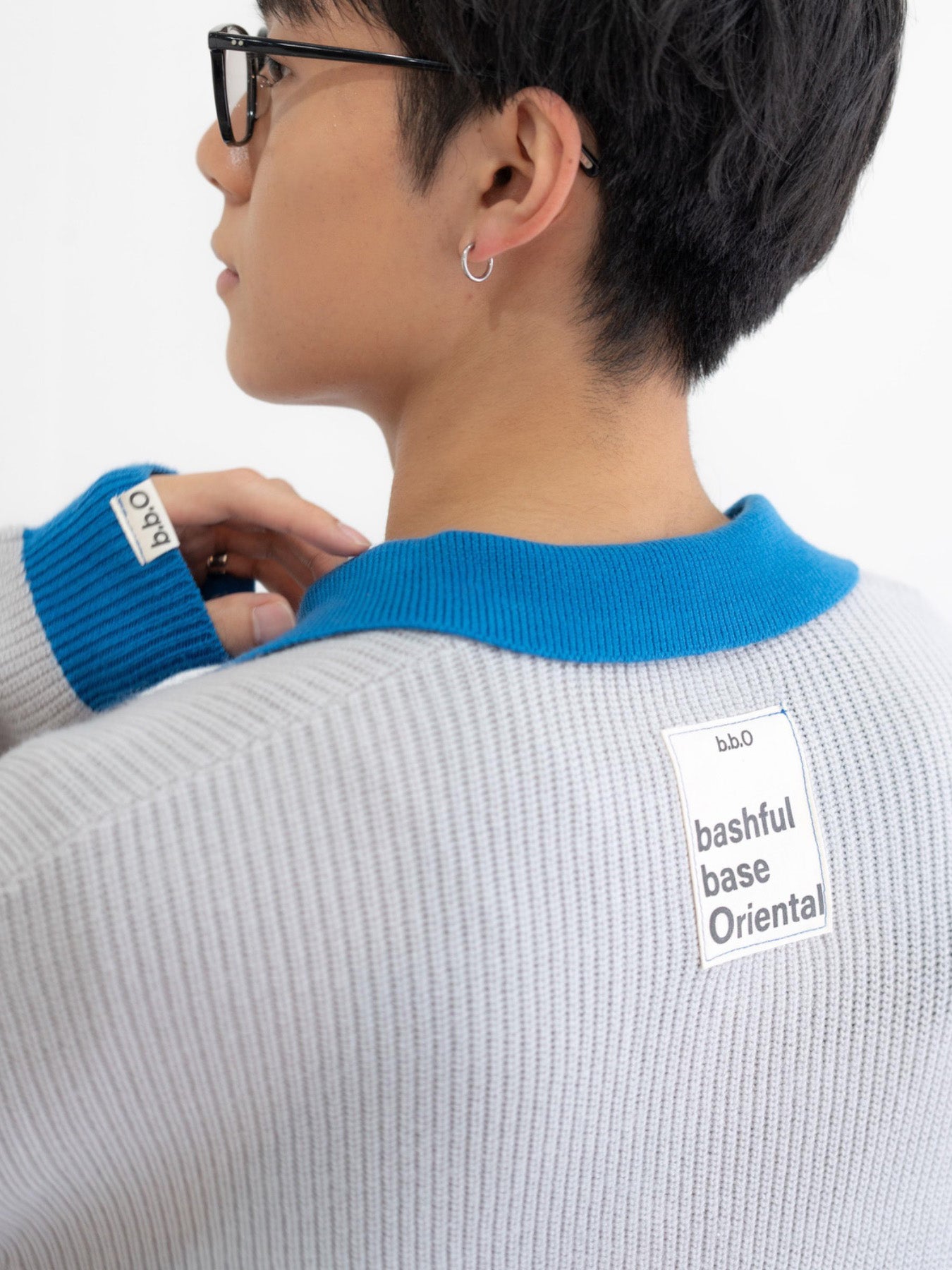 衿・袖・裾のリブを配色で切り替え、クラシックな佇まいに遊び心をプラス。