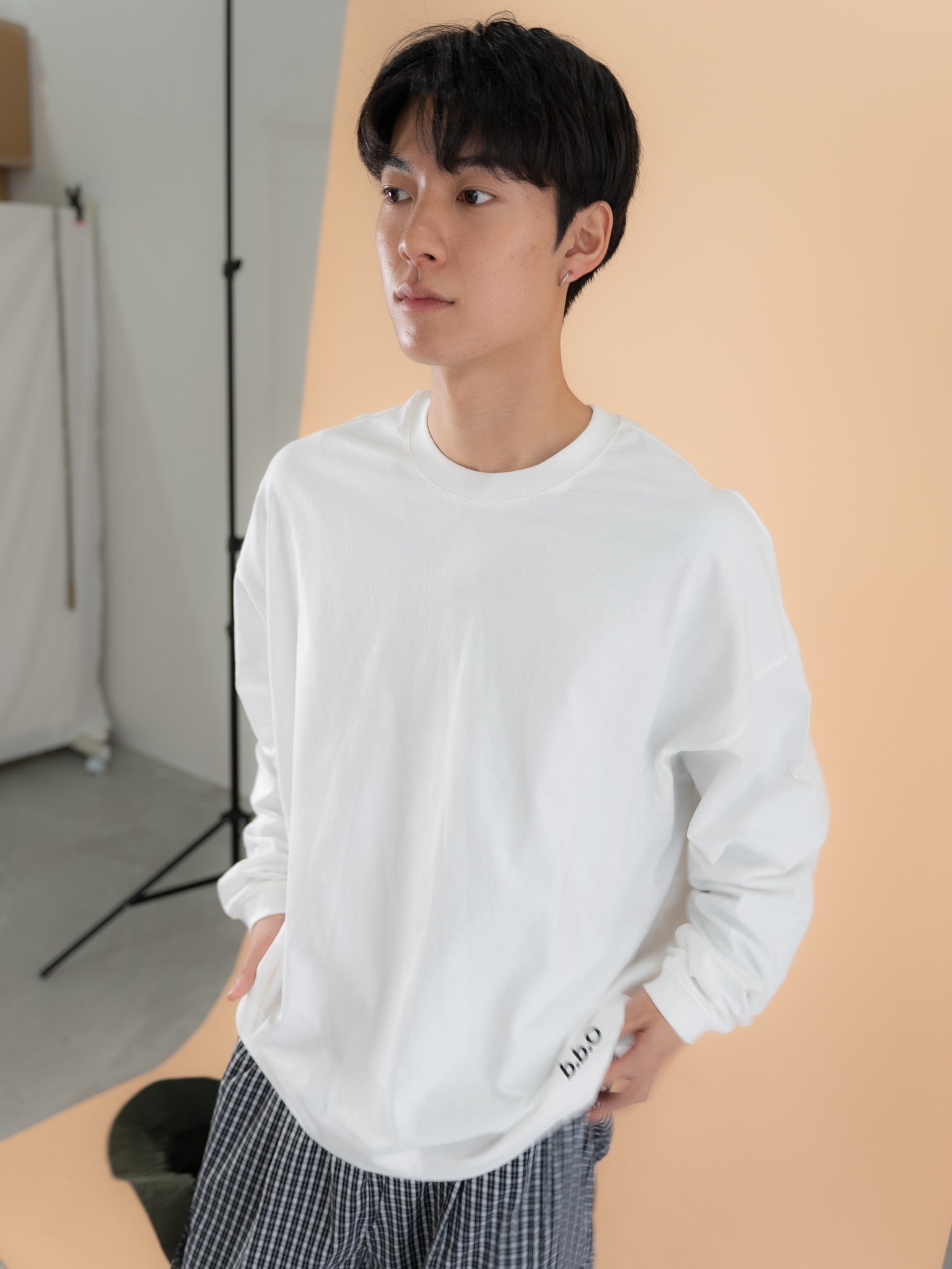 フロント左裾には小さめの“b.b.O”ロゴをさりげなく配置し、ミニマルながらもブランドらしさをしっかり主張します。