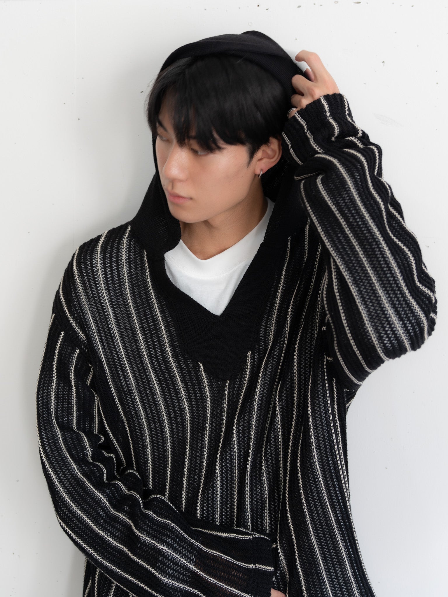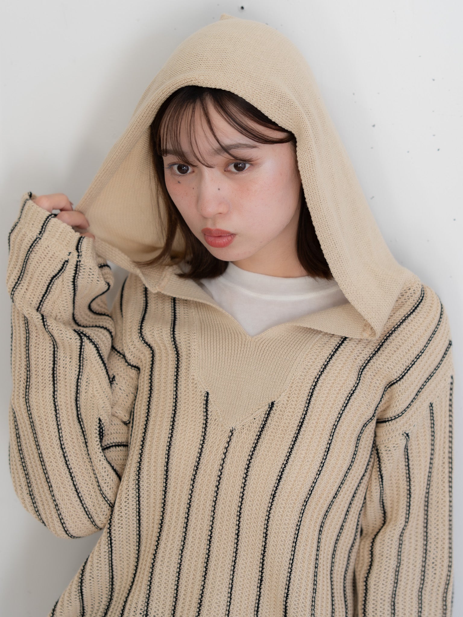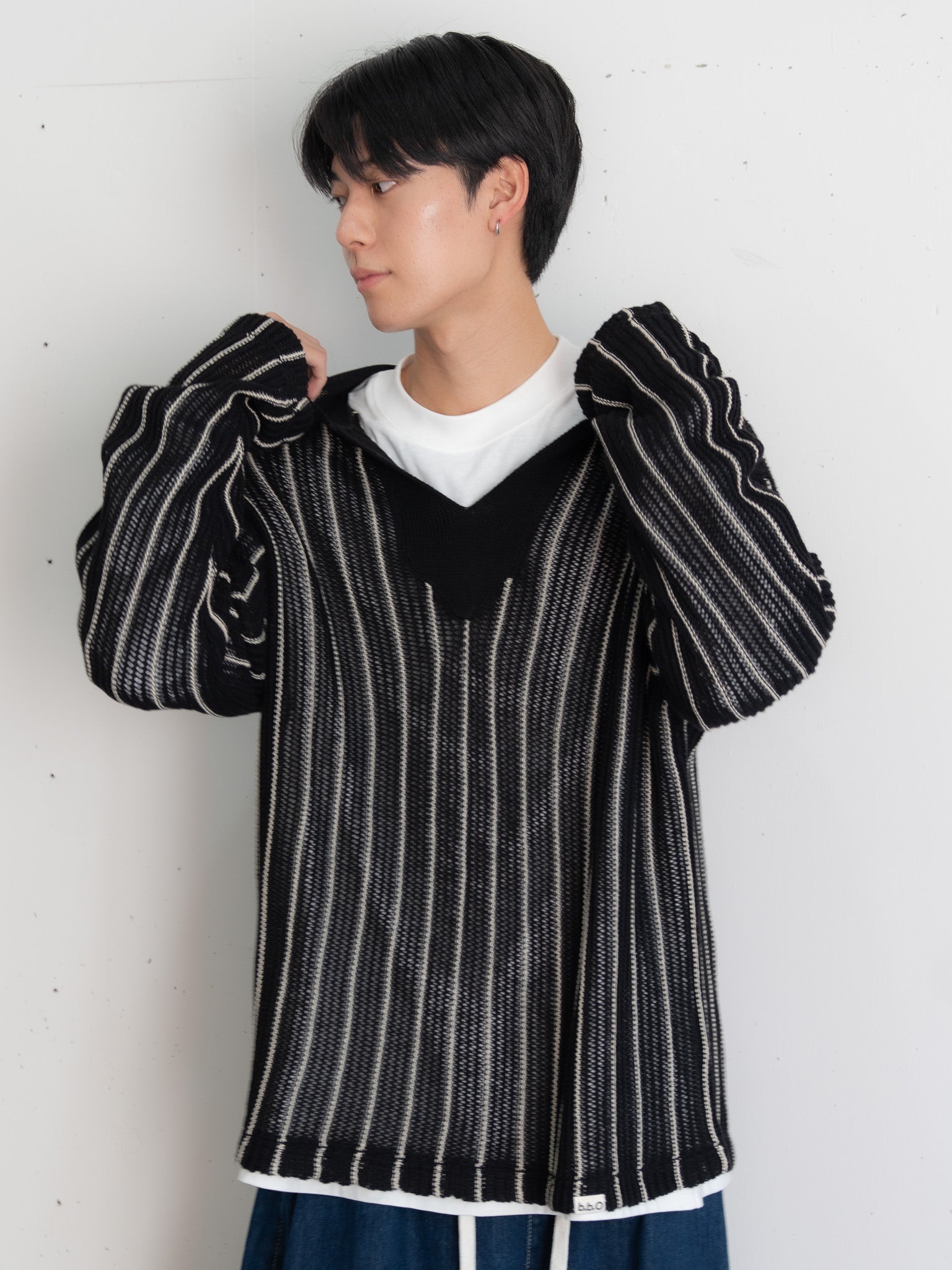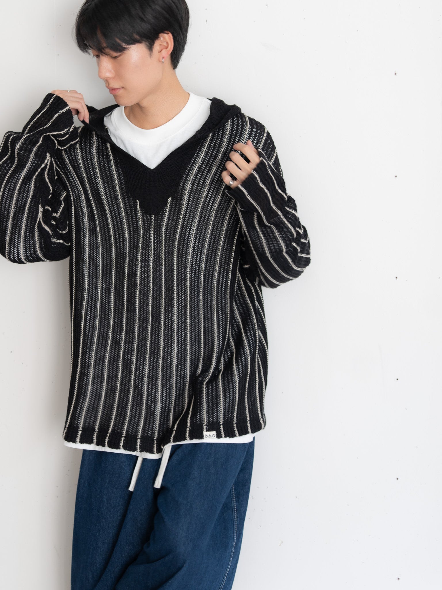 【bbO】ストライプニットパーカー・メキシカンパーカー