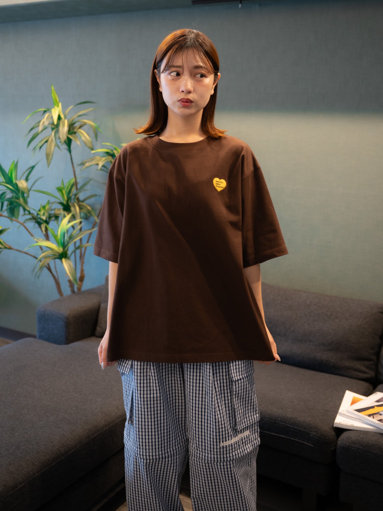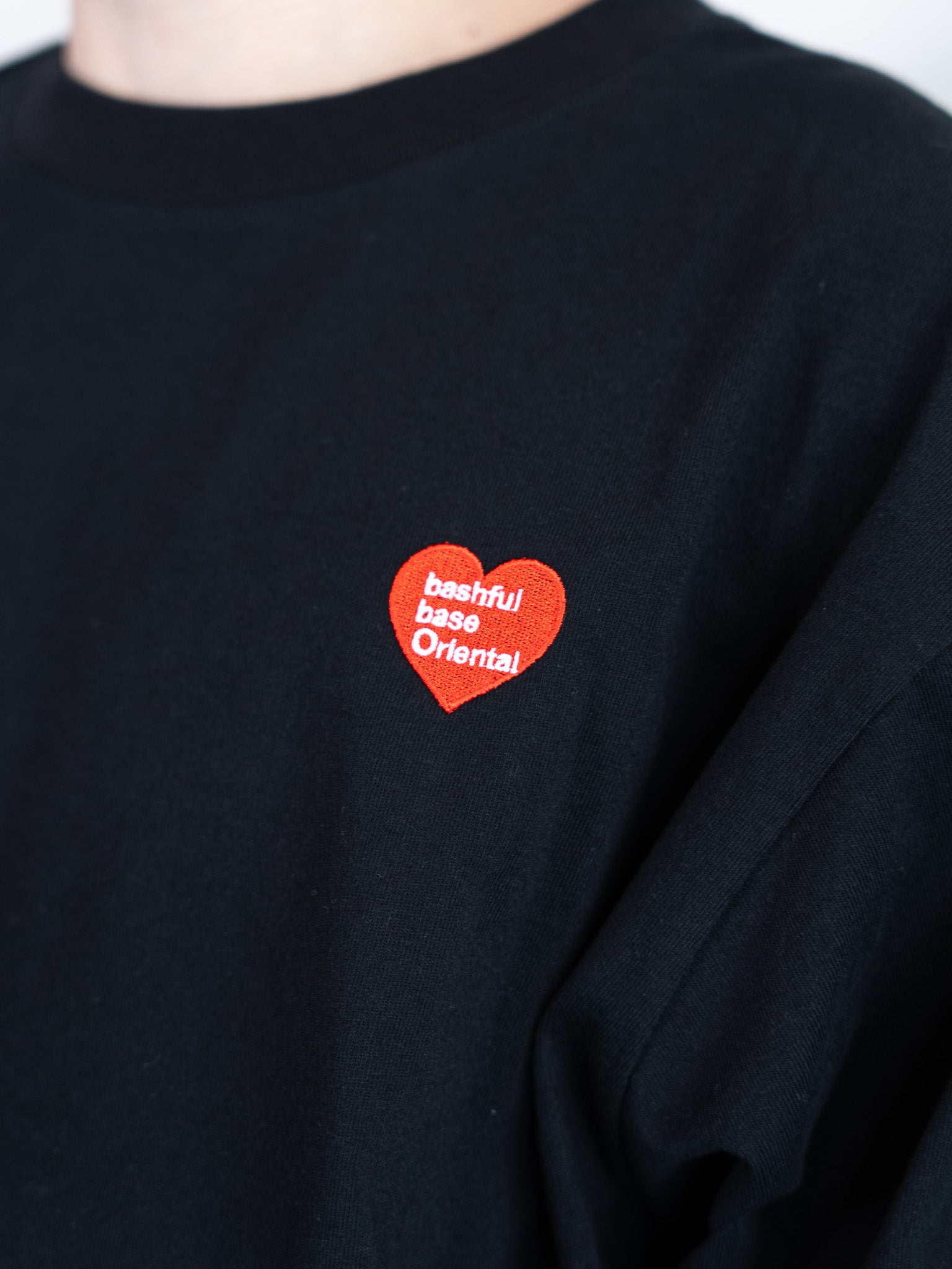 ハートの中に「bashful base Oriental」のロゴを刺繍で施し、さりげなくも立体感のあるアクセントに仕上げました。