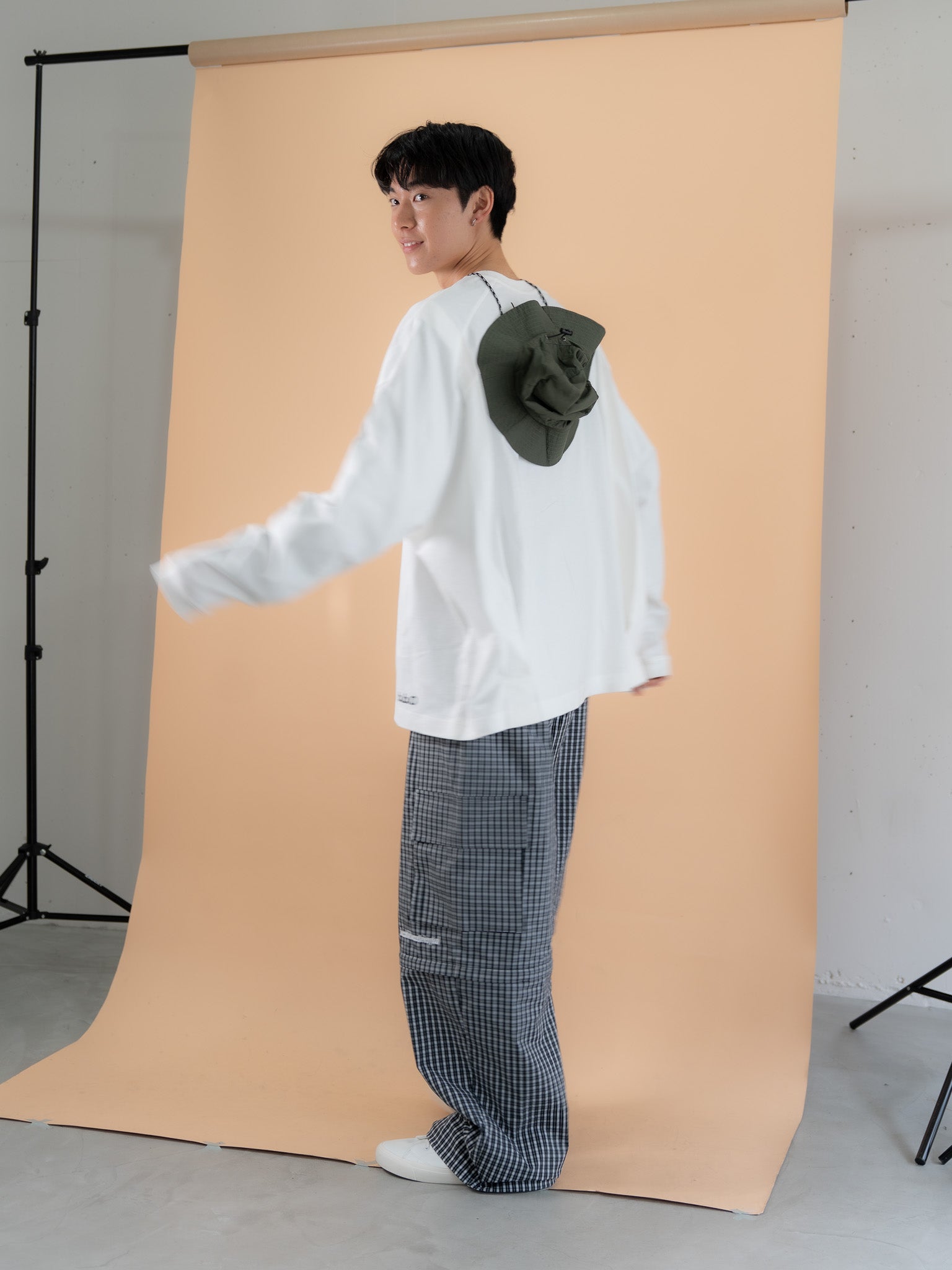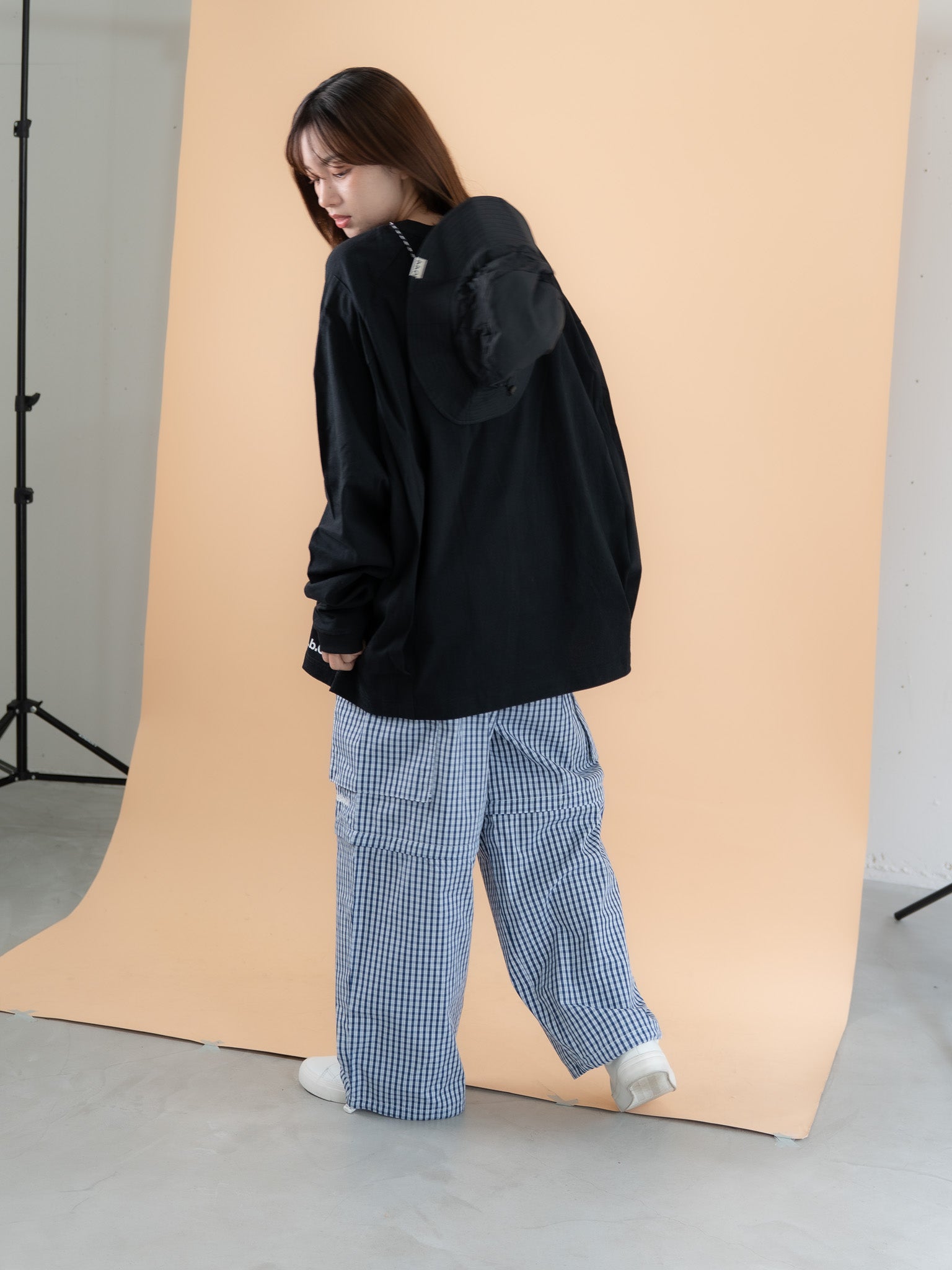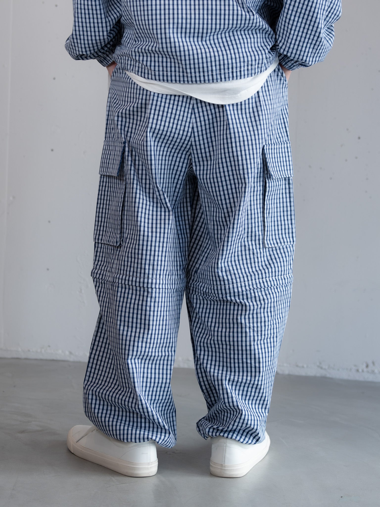 [SET]バックロゴボリュームロンT +チェック柄2WAYカーゴポケットパンツ(2set)