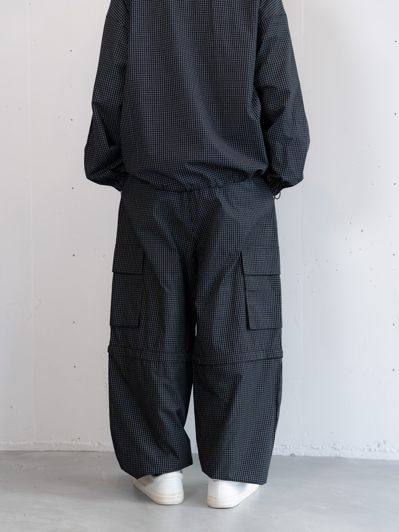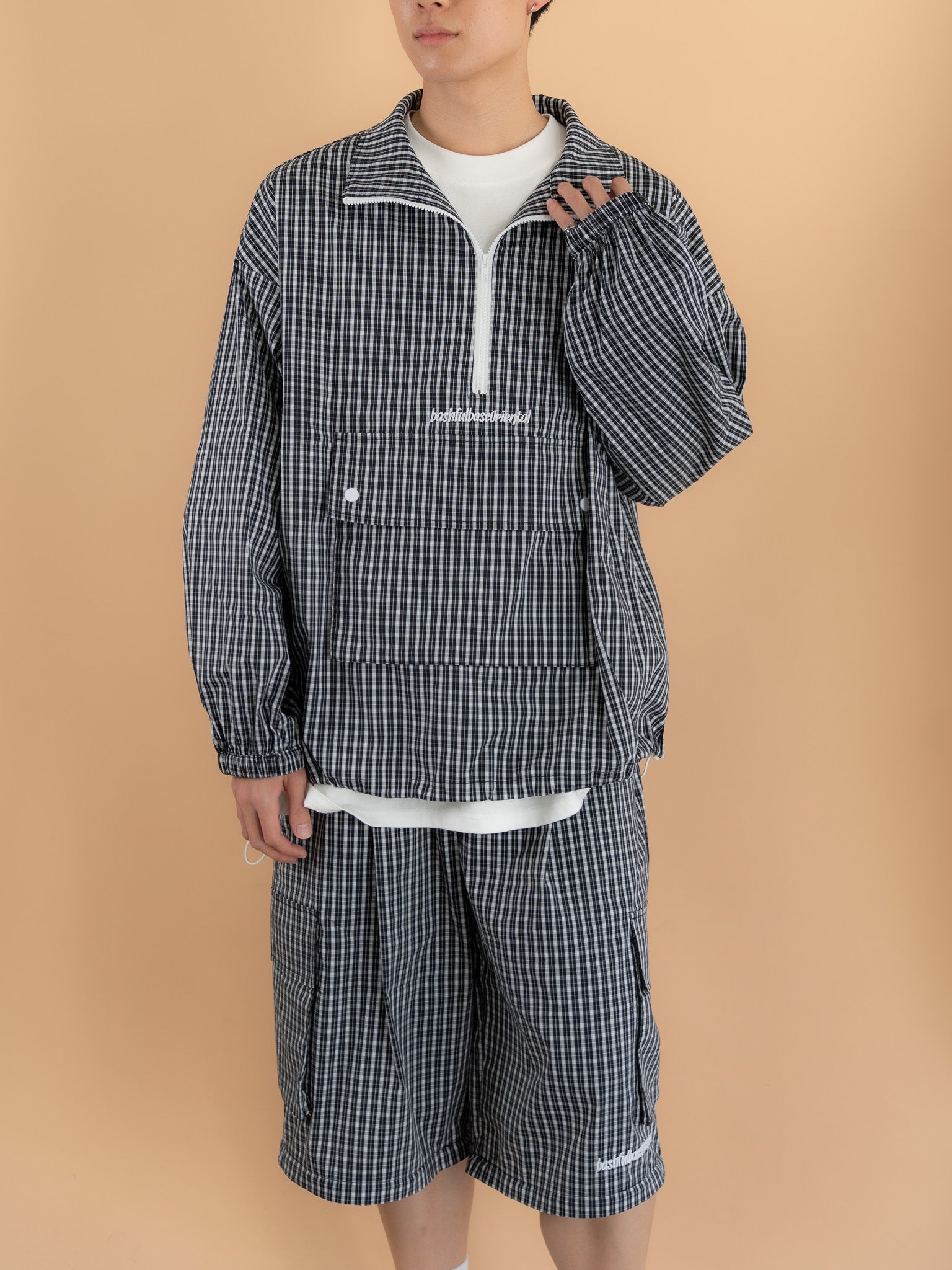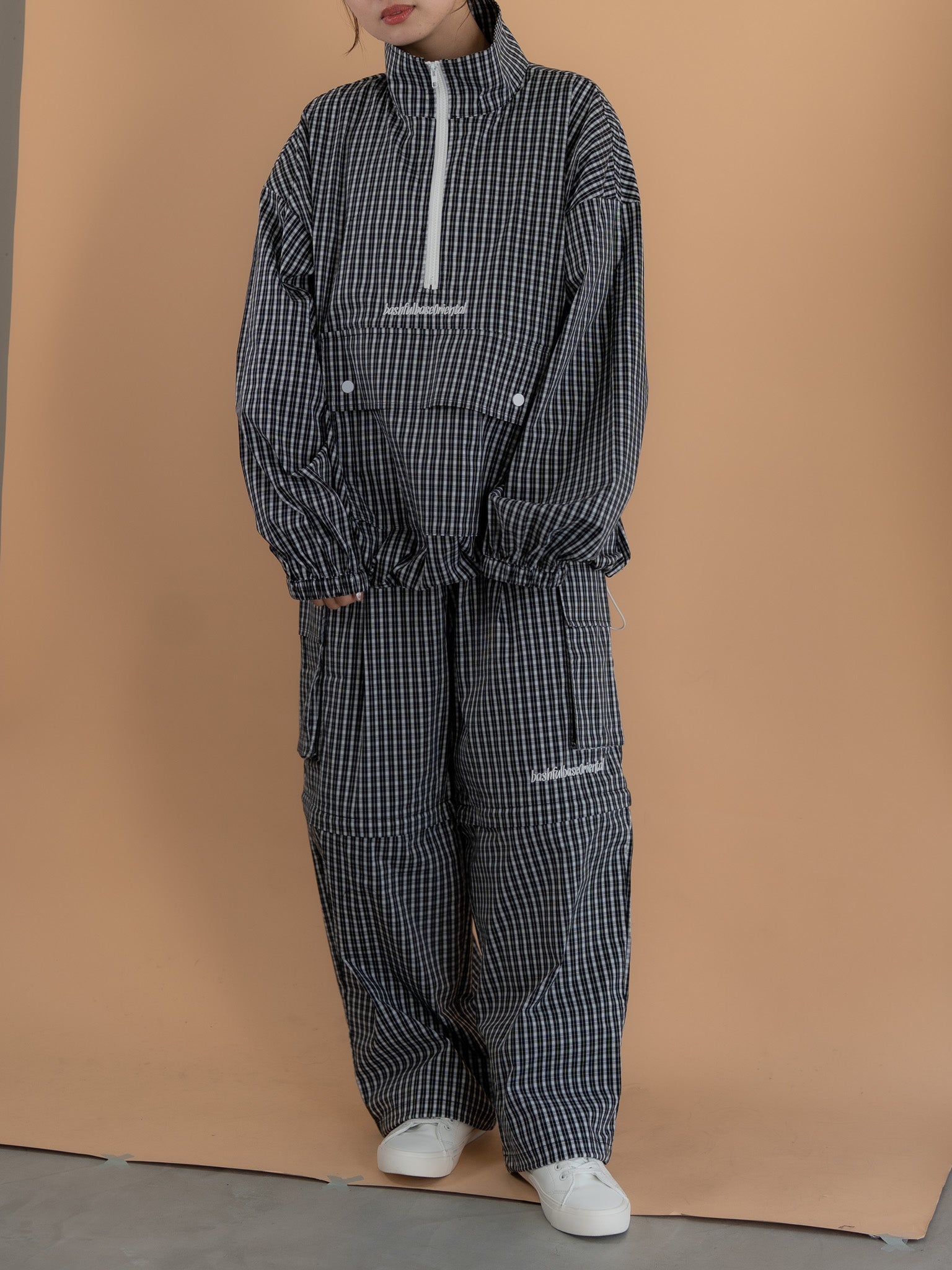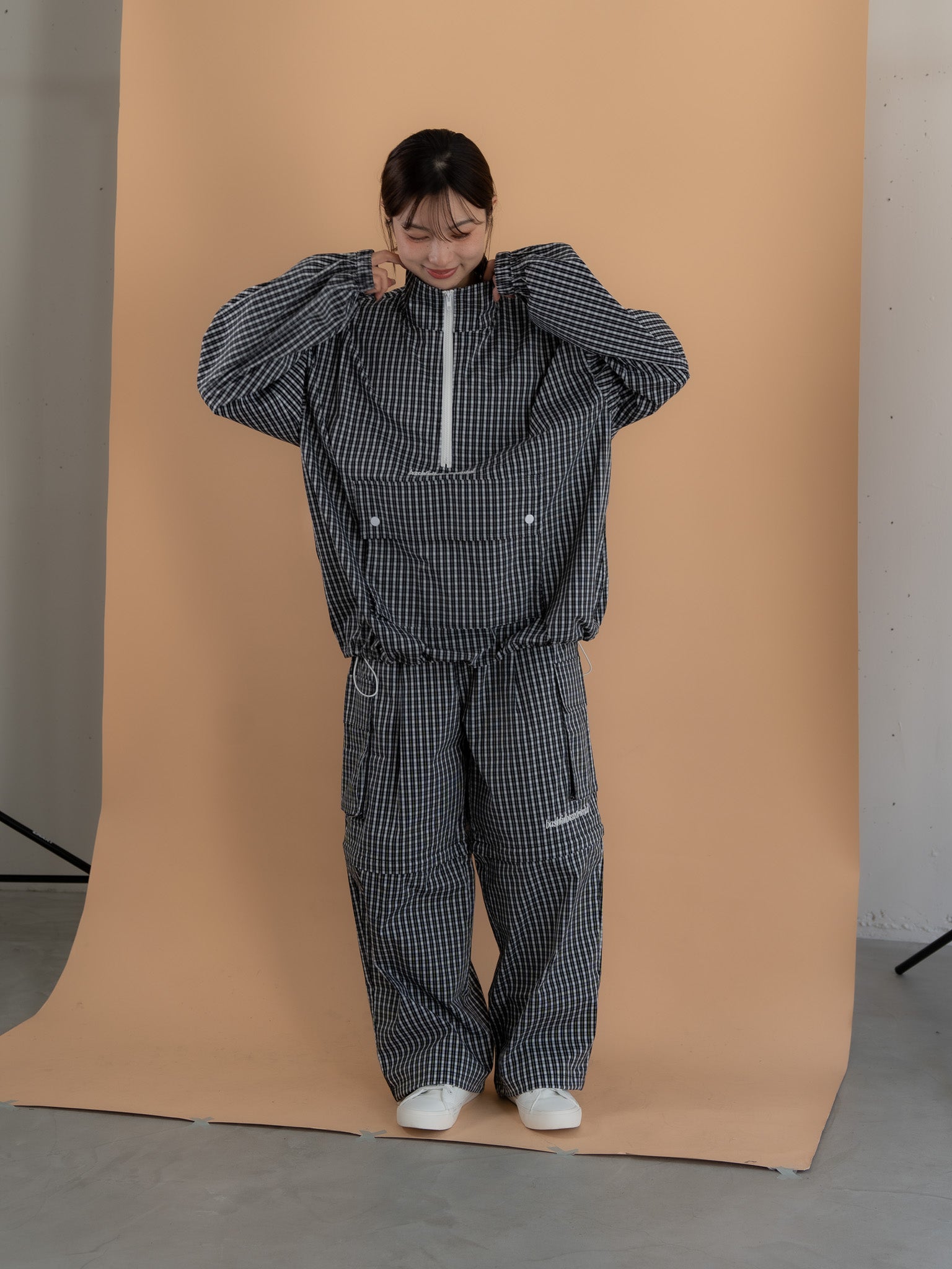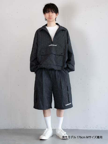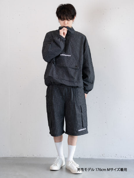 [SET]チェック柄ハーフジップアノラック+チェック柄2WAYカーゴポケットパンツ(2set)
