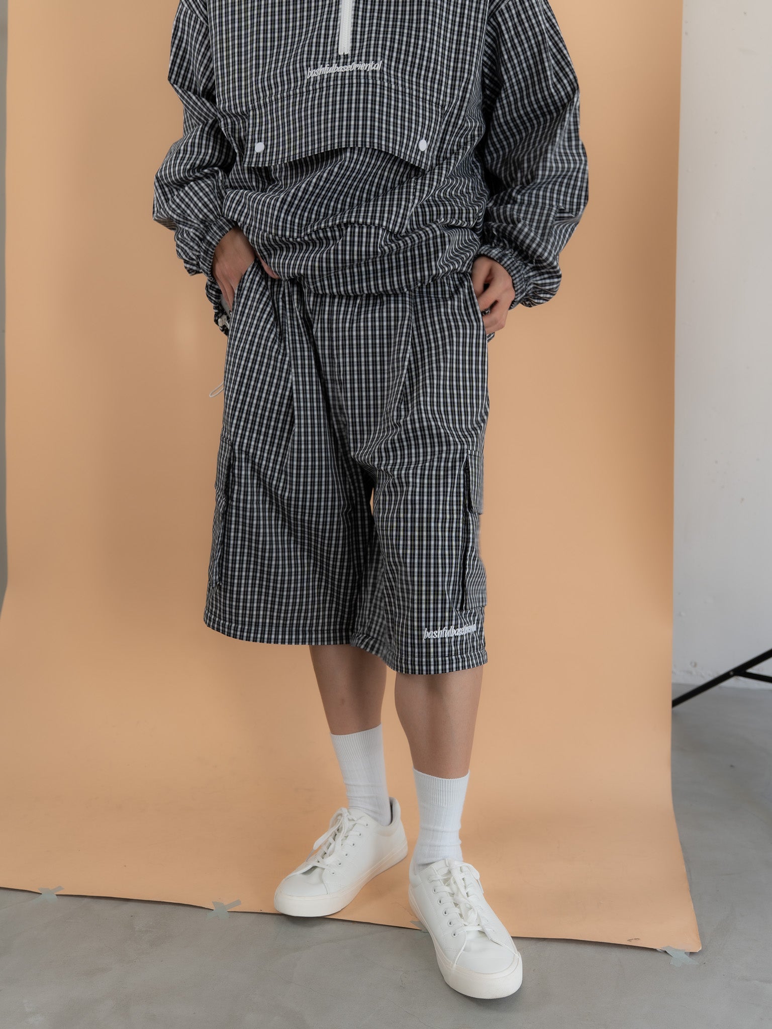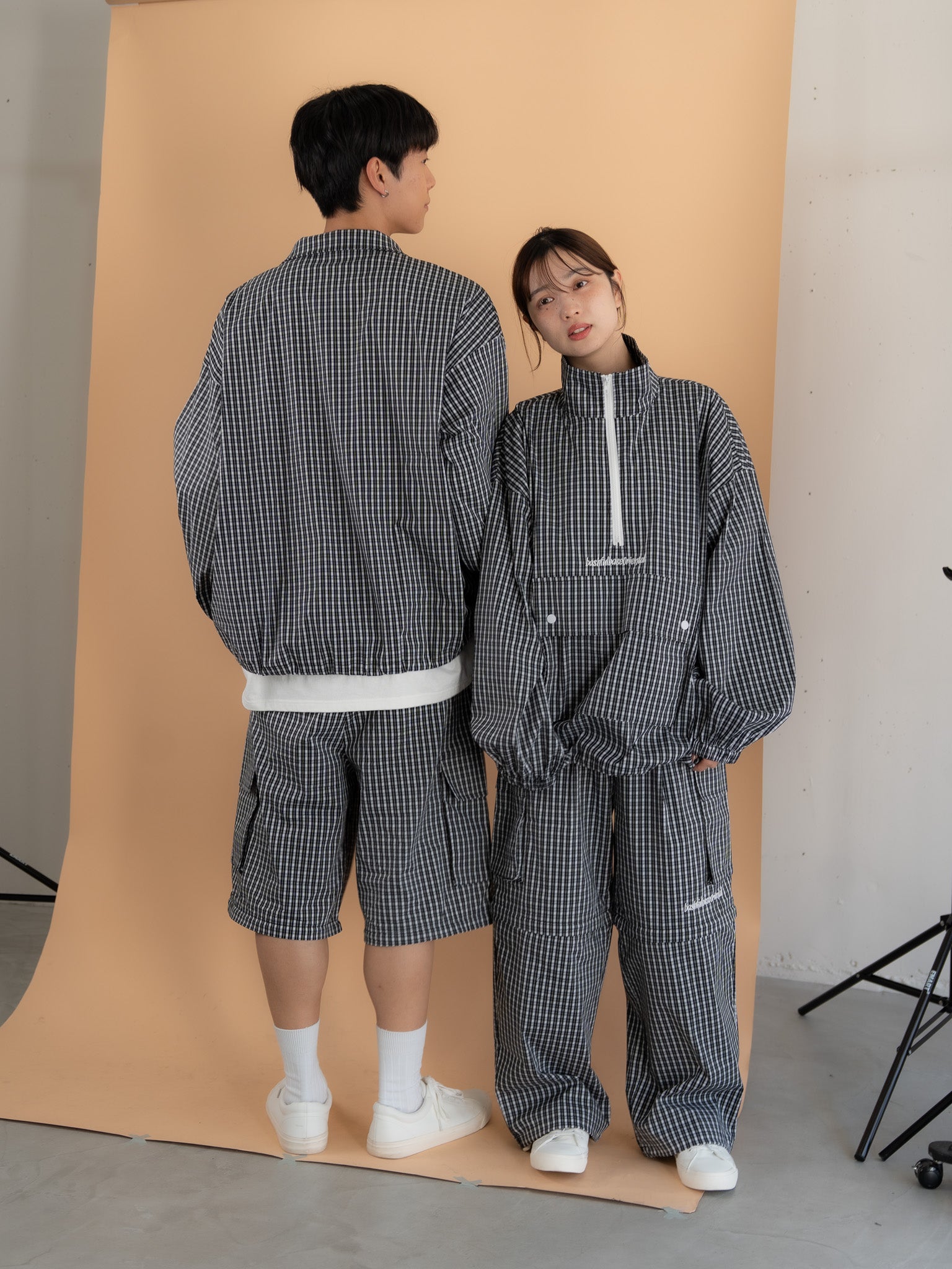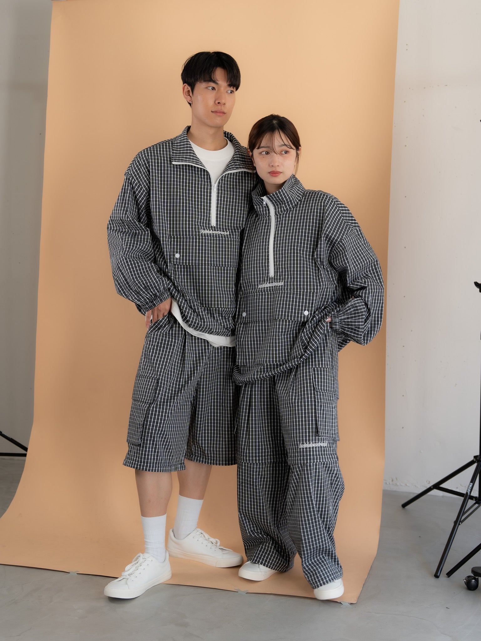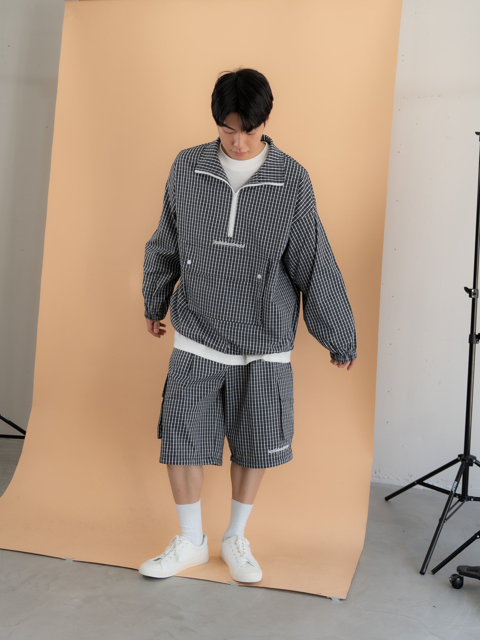 [SET]チェック柄ハーフジップアノラック+チェック柄2WAYカーゴポケットパンツ(2set)